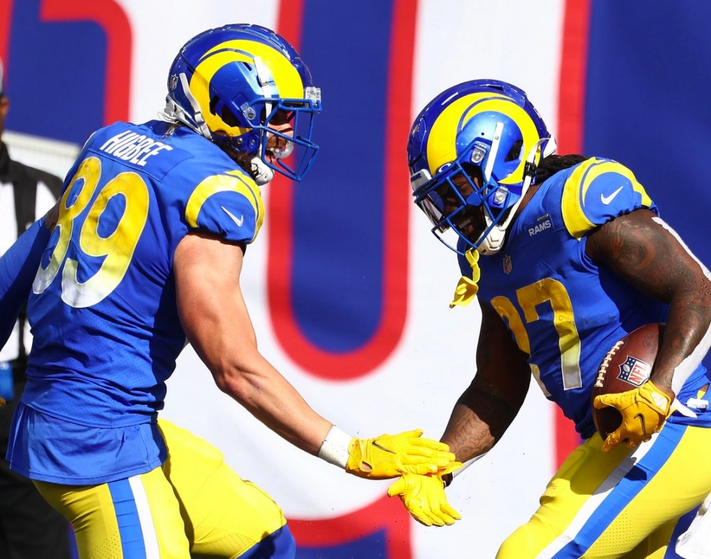 Under heavy pressure consistently, Giants’ quarterback Daniel Jones had two strip-sack fumbles, losing one, and threw two first-half interceptions. Two of the Rams’s second-quarter touchdowns came on drives 12 and 14 yards after Giants’ turnovers.