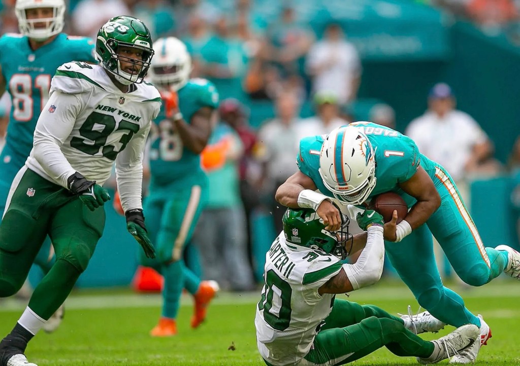 Dolphins quarterback Tua Tagovailoa was out this week with a concussion, and backup Teddy Bridgewater on the first play from scrimmage suffered an elbow injury along with a potential concussion and was ruled out for the remainder of the game due to the NFL’s new protocols. Seventh-round pick Skylar Thompson took over in his stead.