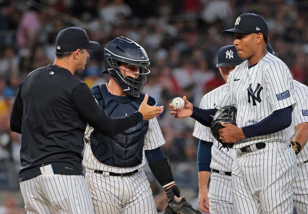 The Red Sox took a 4-0 lead 19 pitches in against rookie Jhony Brito (4-6) when Yoshida hit a changeup into the right-center field seats. Yoshida homered after the Yankees were charged with consecutive mound visits to go over signs because the PitchCom device was not working for the Red Sox, meaning the Yankees were unable to use it.