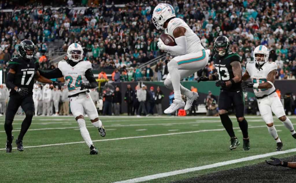 In the New York Jets’ 11th game of the 2023 NFL season, in East Rutherford, New Jersey, on a cool and sunny afternoon, the Jets were blown out by the Miami Dolphins, 34 – 13.