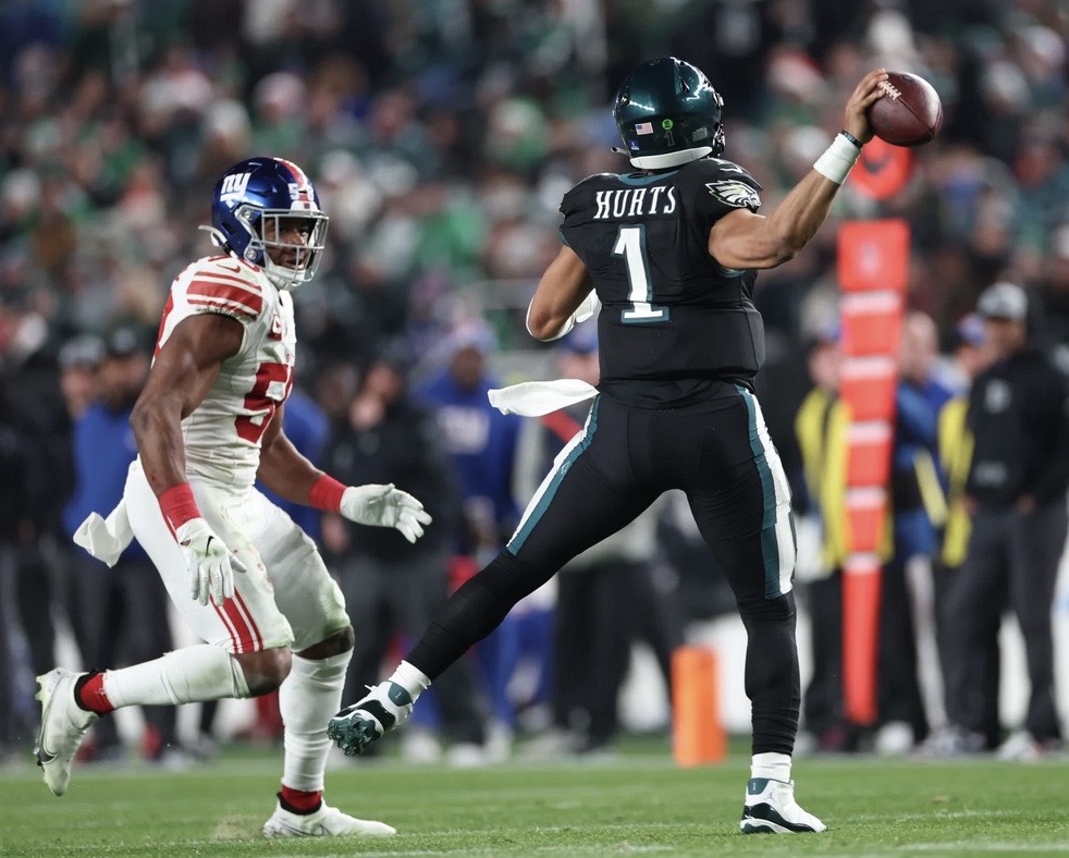 After nearly letting a 17-point halftime lead slip away for good, the Philadelphia Eagles defeated the New York Giants 33-25. It was their 12th consecutive victory over the Giants and snapped a three-game losing streak. Now at 11-4, the win also keeps the Eagles as the favorite to win the NFC East.
