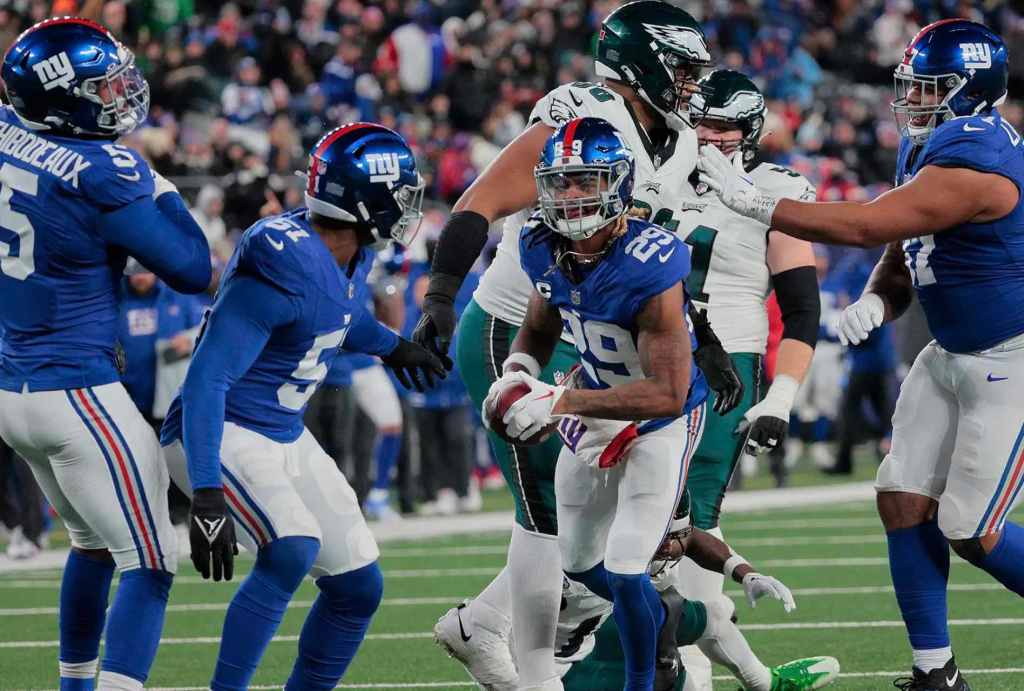The Eagles pulled quarterback Jalen Hurts and several starters in the second half. Saquon Barkley, in what could be the curtain call on his six-year stay with the Giants, rushed for two touchdowns.