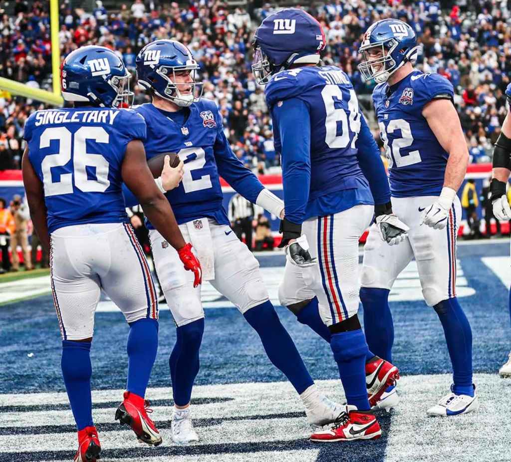 Lock took a perfect 158.3 passer rating deep into the fourth quarter, completing 14 of his first 17 attempts for 254 yards and four touchdowns. He finished 17 of 23 for 309 yards and accounted for five total touchdowns, including a five-yard run to put the Giants ahead 42-33 with 2:57 left in the game.