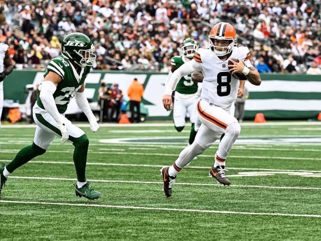 The New York Jets got touchdowns on a kickoff return and a punt return in the same game for the first time in franchise history, Breece Hall took a screen pass from Justin Fields 42 yards for the go-ahead score and the Jets held on to defeat the Cleveland Browns 27-20 on a rainy Sunday.