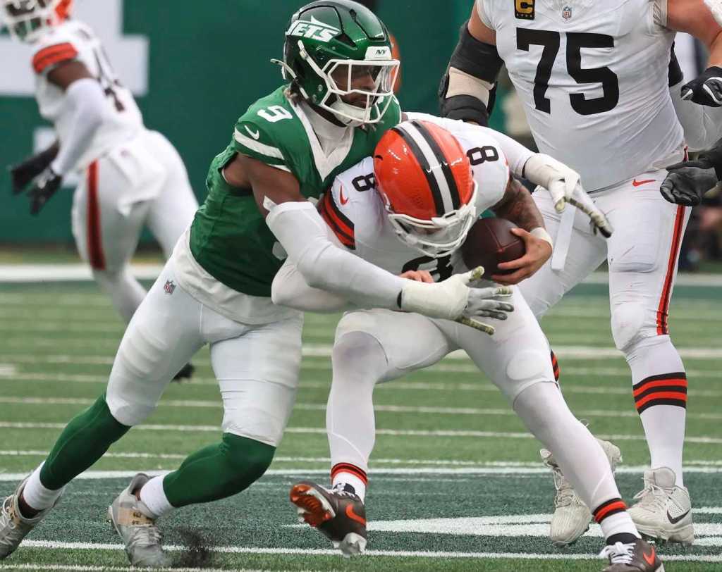 Hall ran three times and the Jets lined up on fourth down to let the play clock run down before planning to call a timeout and punt, but Cleveland’s Cameron Thomas jumped — and New York had a fresh set of downs and the victory.